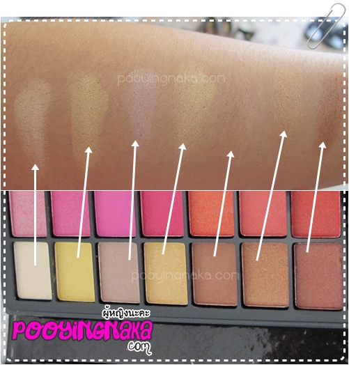 โทนแรกโทนชมพูแนวธรรมชาติค่ะ บางสีเข้มก็ปาดไม่ติด แต่สีไหนสวย สีไหนชัด ปาดนิดเดียวจะติดเลยค่ะ ที่เห็นชัดก็จะสีที่ 3 กับ 5