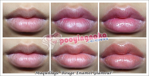 2. ทาทับด้วยกลอสรวมแสง เมื่อรูจแห้งดีแล้ว จะเคลือบด้วยกลอสอีกชั้น โดยเริ่มทาจากกลางริมฝีปากออกไปทางด้านนอก เพื่อความงาม เรียวปากสวย ดูเอิบอิ่ม
