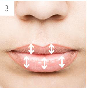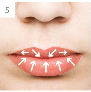 3. จากนั้นใช้ลิปไลเนอร์วาดให้เต็มรูปปากแล้วตบแป้งฝุ่นเบาๆ บนริมฝีปาก