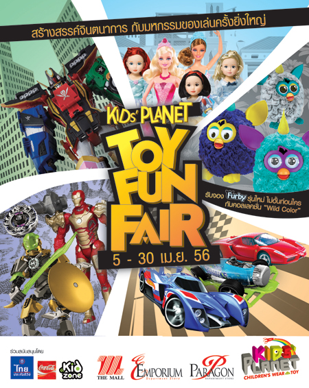 Kids Planet (คิดส์แพลนเน็ต) เดอะมอลล์กรุ๊ป ชวนคุณหนูๆร่วมสัมผัสโลกแห่งจินตนาการอย่างไร้ขีดจำกัด กับงานแฟร์ของเล่นครั้งยิ่งใหญ่แห่งปี Kids Planet Toy Fun Fair 2013 ตื่นตากับของเล่นไฮไลท์และเกมส์ รุ่นใหม่ล่าสุดจากแบรนด์ยอดนิยม เพลิดเพลินกับเหล่าบรรดาการ์ตูนตัวโปรดที่จะมาร่วมสร้างความสุข รับปิดเทอม พร้อมร่วมเรียนรู้สนุกสนานไปกับหลากหลายกิจกรรมเสริมสร้างทักษะและจินตนาการ