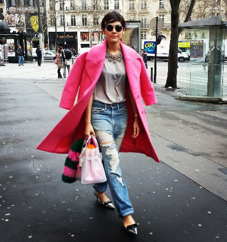 ชมพู่ อารยา สวมยีนส์กับเสื้อยืด คลุมด้วยโค้ทสีสด เก๋ไก๋ในต่างแดน