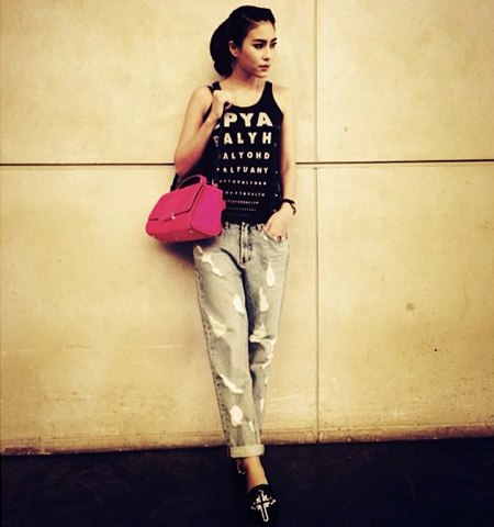 โอปอล์ ปาณิสรา ใส่ยีนส์กับเสื้อยืดสีเรียบ ตบท้ายด้วยส้นสูง เปรี้ยวๆ
