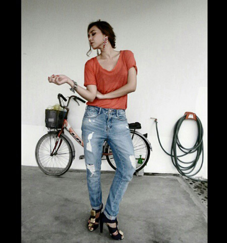 เจน เจนสุดา เลือกยีนส์กระบอกเล็ก กับเสื้อยืดและส้นสูง ดูปราดเปรียว