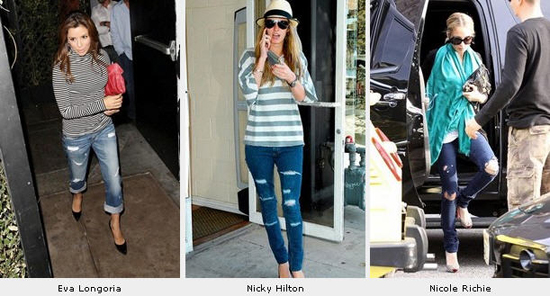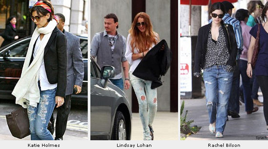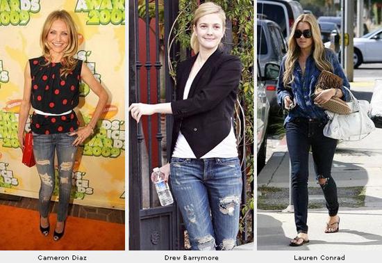 แฟชั่นของสาวๆฮอลลีวู้ดในช่วงนี้ ไม่มีอะไรฮิตไปกว่ากางเกงยีนส์เซอร์ๆ เก่าซีดและขาดวิ่น ซึ่งเป็นเทรนด์แฟชั่นที่เข้ากับอากาศร้อนๆของบ้านเราอยู่แล้ว ที่สำคัญ สามารถใส่ได้เกือบทุกโอกาส แค่ลองมิกซ์แอนด์แมทช์กางเกงยีนส์กับเสื้อยืดสำหรับวันธรรมดา และสวมแจ๊คเก็ตหรือเบลเซอร์ทับ สำหรับโอกาสที่จริงจังแต่ไม่ได้เป็นทางการมากนัก