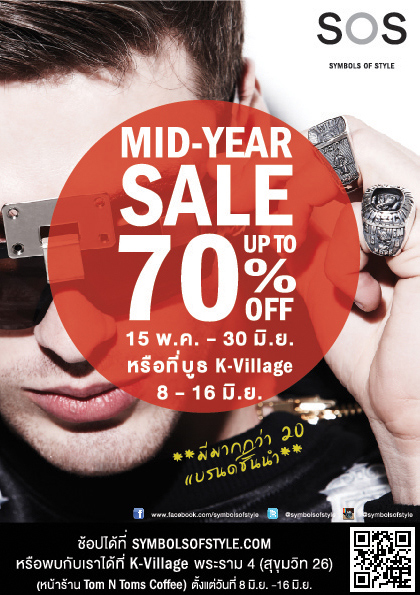 SOS - Mid Year Sale  ตั้งแต่วันนี้ - 30 มิถุนายน 2556  โดยมีแบรนด์เข้าร่วมมากกว่า 20 แบรนด์ และส่วนลดสูงสุดถึง 70%