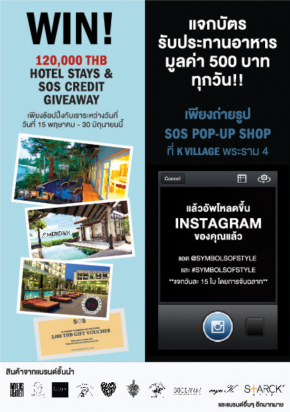 และ SOS ยังเปืดบูธให้ช้อบถึงที่อีกในวันที่ 8-16 มิถุนายน 2556 ที่ K Village บริเวณหน้าร้าน Tom n Toms Coffee
