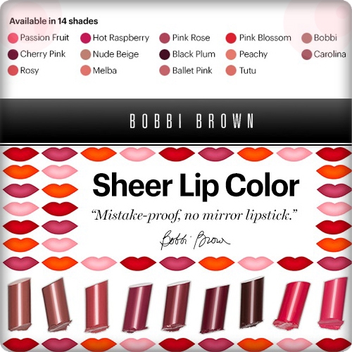 Bobbi Brown เชื่อว่าลิปสติกที่ยอดเยี่ยมควรใช้งานง่าย ให้สีสดใส สะดวก และรวดเร็ว ซึ่ง Sheer Lip Color มีคุณสมบัติเหล่านี้ครบถ้วนทุกประการ ด้วยสูตรที่มอบเนื้อสัมผัสบางเบา เกลี่ยสีได้เรียบเนียน สม่ำเสมอ ให้ผลลัพธ์ริมฝีปากสีสันสวย เป็นธรรมชาติ บางเบา พร้อมให้ความรู้สึกแวววาว ชุ่มชื่น ยาวนาน และใช้ได้จริงในทุกๆวัน