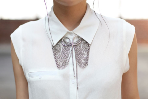 Bib Necklace/long layer เหมาะกับเสื้อที่ปิดคอมิดชิดหรือคอเต่า ที่สำคัญต้องระวังเรื่องสัดส่วน และขนาดของสร้อยด้วยนะคะ สำหรับคนที่ตัวเล็กและรูปร่างผอม ก็อย่าใส่เลเยอร์เยอะมากไป จะยิ่งทำให้เราดูเตี้ยลง พะรุงพะรัง