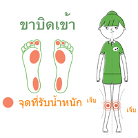 เมื่อคนเราเดินหรือยืนอย่างผิดวิธี เช่น ขาโก่ง ขาบิดเข้า หรือเดินตัวเอียง ทำให้การถ่ายน้ำหนักของฝ่าเท้าไม่ถูกต้อง กระดูกอ่อนที่อยู่ระหว่างข้อต่อจึงเกิดการสึกกร่อน ทำให้กระดูกกระทบกัน เกิดอาการเจ็บปวดบริเวณข้อต่อ และหากยังคงยืนหรือเดินด้วยท่าทางที่ผิดต่อไป อาจเป็นสาเหตุให้เกิดโรคข้อเข่าเสื่อมได้ จึงควรปรับลักษณะการยืนหรือเดิน ให้กลับเข้าสู่ท่าทางที่ถูกต้องเพื่อยืดอายุการใช้งานของกระดูกข้อต่อนั่นเอง
