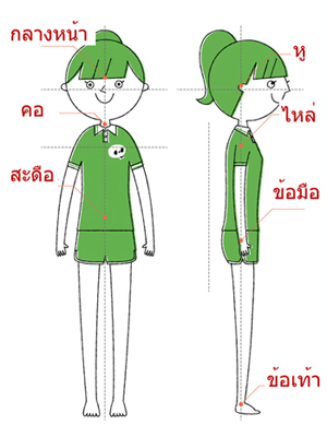 1.หู ไหล่ ข้อมือและข้อเท้า ต้องอยู่ในแนวเดียวกัน