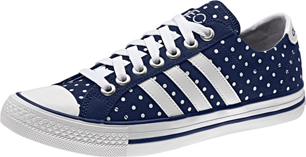 สุดท้ายกับเทรนด์ลายจุด หรือ โพลก้าดอท (Polka dot) ที่ยังคงได้รับความนิยมอย่างต่อเนื่องไม่ขาดสาย กับรุ่น CALNEO ST W (ราคา 1,990 บาท) รองเท้าผ้าใบสีน้ำเงินเข้ม ตัดด้วยลายจุดสีขาว คาดแถบสัญลักษณ์สีขาว 3 แถบ พร้อมดีเทลในการออกแบบพื้นยางบริเวณหน้าเท้าด้วยลวดลายที่แปลกตา เพิ่มลูกเล่นให้รองเท้าสวยเด่นมากขึ้น