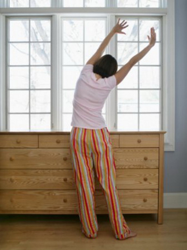 ที่บ้าน   เริ่มตั้งแต่ตื่นนอนตอเช้าเลยค่ะ  เพิ่มเวลาเดินยืนให้มากกว่าการนั่ง  สาวๆ ลองหันตื่นเช้าอีกนิดเดินเล่นรอบๆบ้าน ยืดเส้นพร้อมหายใจเข้าลึกๆ เพื่อรับอากาศดีในตอนเช้า  หันมาทำงานบ้าน ทำกับข้าว แค่วันละ  30  นาที  แค่นี้ก็จะช่วยลดพุงพร้อมทั้งยังมีสุขภาพที่อีกด้วยค่ะ