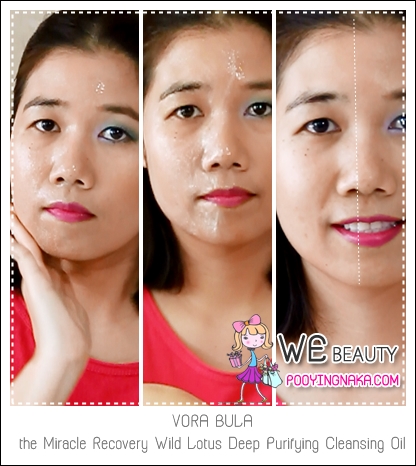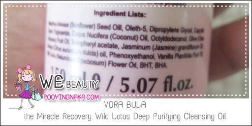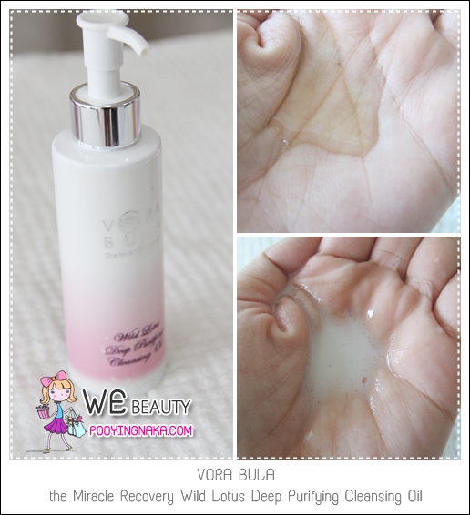 ตัวแรกเป็นเคลนซิ่งออยล์ค่ะ VORA BULA the Miracle Recovery Wild Lotus Deep Purifying Cleansing Oil เป็นออยล์สีเหลือง แต่ไม่มีความหนืดค่ะ เหลวๆ กลิ่นหอม แต่เค้าบอกว่าไม่ได้ใส่น้ำหอมสกัดนะคะ เป็นน้ำมันสกัดจากธรรมชาติที่มีโมเลกุลเล็ก จึงไม่รู้สึกเหนอะหนะ ทั้งจากน้ำมันมะกอก, น้ำมันรำข้าว, เมล็ดดอกทานตะวัน และน้ำมันมะพร้าวบริสุทธิ์ แล้วเมื่อโดนน้ำก็จะกลายเป็นน้ำนมค่ะ