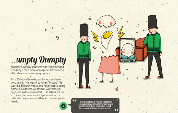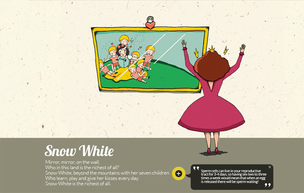 เรื่องเล่าใหม่ใส่มุกตลกที่ใครๆ ก็อยากฟัง อาทิเช่นเรื่อง Alice in wonderland หรือ อลิส หนูน้อยในดินแดนมหัศจรรย์ เป็นตัวแทนของการใช้ชีวิตตามความฝัน ผจญภัยไร้ขอบที่ไม่ต่างกับคนปัจจุบันที่มีแนวคิดปัจเจกชนมากขึ้น และใช้ชีวิตยาวนานเพื่อตอบสนองความต้องการของตนเองเสียเป็นส่วนใหญ่ โดยภาพประกอบสื่อจะเป็นสาวน้อย ใส่เสื้อยืดแนวๆ เขียนว่า YOLO ที่ย่อมาจาก You Only Live Once ประมาณ ชีวิตเรา ใช้ซะ (เพราะเกิดมาหนเดียว ขอใช้คุ้ม) จึงอาจะทำให้มองข้ามไปถึงการอยู่อย่างสัตว์สังคมที่ต้องพึ่งพาอาศัยกันและกัน สร้างสายสัมพัน์เชื่อมโยงใยให้เป็นรากที่แตกหน่อต่อเนื่องเพื่อองค์รวม เสน่ห์อยู่ตรงที่เลือกเรื่องราวคลาสสิค ที่ใครๆ ก็เข้าถึงง่าย เช่น สโนว์ไวท์กับคนแคระทั้งเจ็ด เป็น สโนว์ไวท์กับลูกๆ ทั้งเจ็ด หรือ ซินเดอเรลล่า และอีกมากมาย ที่นำเรื่องราวมาบิดให้เกิดความน่าสนใจและผู้อ่านเกิดการตั้งคำถามที่นำไปสู่การปฏิบัติ