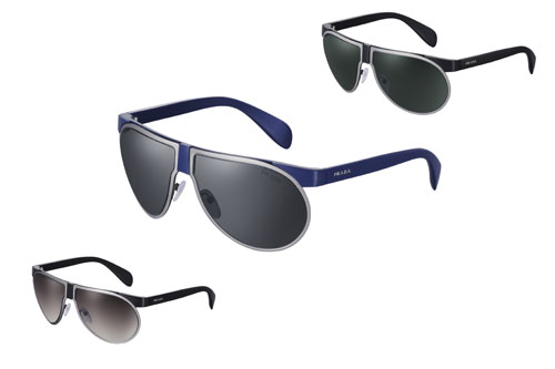รูปลักษณ์ที่มีความเรียบง่ายคือธีมหลักของคอลเล็คชันแว่นตาบุรุษประจำาฤดูใบไม้ผลิ/ฤดูร้อนของ Prada ปี 2013 ธีมที่กลับมานำาเสนอใหม่นี้มีจุดเด่นอยู่ที่กรอบแว่นขนาดใหญ่ แต่เป็นทรงสี่เหลี่ยม เรขาคณิตที่แปลกตา ผลิตจากวัสดุแบบฉีดขึ้นรูปด้วยไนลอน โครงสร้างที่มีดีไซน์อย่างชัดเจนของ ขอบโลหะสีตะกั่วด้านหรือมันเงามีลายเส้นที่เด่นชัดซึ่งแยกระหว่างสีของเลนส์ออกจากสีของกรอบ แว่น มีวางจำาหน่ายในสีดำาสีดำาด้าน และสีฟ้าน้ำาทะเลด้าน มีโลโกตัวอักษรของ Prada