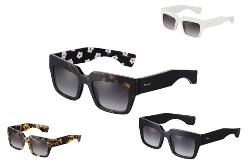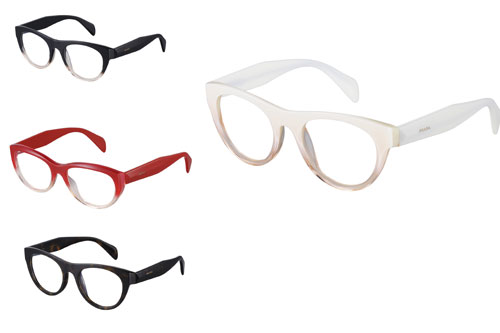 แว่นตาสำหรับบุรุษแบบคลาสสิกได้ถูกนำเสนอใหม่ในรูปแบบสำหรับสตรี ดีไซน์ได้อย่างกลมกลืน ระหว่างรูปทรงและความหนาของวัสดุอะซิเตทที่ประณีตและเรียบหรู มีวางจำหน่ายในสีดำสีงาช้าง และสีผสมระหว่างลายกระสีกลาง ลายกระสีอ่อน-เข้ม และลายกระสีทราย-สีน้ำตาลเข้ม โลโกตัวอักษร โลหะของ Prada มีความโดดเด่นและแยกระหว่างขาแว่นออกจากด้านหน้าของกรอบแว่น