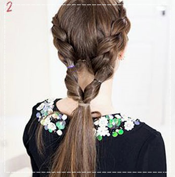 2. ถักเหมือนกันทั้งสองข้างหลังจากนั้นรวบผมแล้วมัดให้เป็นช่อเดียวกัน (มัดหลวมๆ)