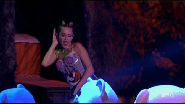 ในงาน TV Video Music Awards ทำเอาคนดูและบรรดานักร้องที่ไปร่วมงานถึงกับอึ้งเมื่อ Miley Cyrus และ Robin Thicke. แสดงร่วมกันบนเวที แต่ภาพที่เห็นนั้นชวนสะอิดสะเอียนยิ่งนัก เธอไม่ได้คิดถึงเด็กๆที่กำลังดูอยู่ หรือพฤติกรรมแปลกๆ ไม่ว่าจะเป็นการถอดชุดออกเหลือเพียงชั้นใน หรือท่าทางเซ็กซี่แบบพิศดารของเธอ ทำให้เราต้องลบภาพ Miley Cyrus ที่เราเคยรู้จักออกไปเสียแล้ว