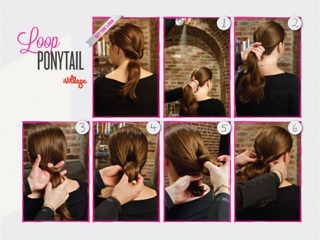 4. จากนั้นให้ตวัดผมส่วนที่มัดไว้เข้าไปด้านในและดึงผมให้หย่อนลงมา