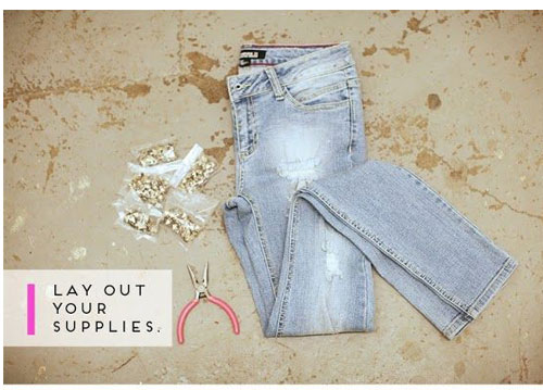 วันนี้เราจะมาชวนสาวๆ มาดัดแปลงขากางเกงยีนส์ให้มีลุคเก๋ๆ กันค่ะ และสามารถทำเองที่บ้านได้ด้วยน่ะค่ะ เริ่มกันที่เตรียมอุปกรณ์ในการทำ
