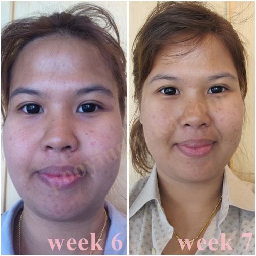 เปรียบเทียบกันดูแล้วลดลงไปเยอะเลยใช่ไหมคะ ที่เห็นเป็นรอยๆ นั้นไม่มีสิวแล้วนะและอีกอย่างรูขุมขนจากกว้างๆ เริ่มเล็กลงแล้วด้วยละคะ  สำหรับสาวๆ คนไหนที่มีปัญหาอย่างพลอยรีบทำการรักษาด่วนกันเลยจ้า  ปล่อยทิ้งไว้นานอาจจะรักษาหน้ายากกว่าพลอยอีกนะ ของแบบนี้ต้องใช้เวลานะคะ อย่าไปหลงเชื่อโฆษณาเกินจริงไม่กี่วันก็เห็นผล ได้ผลไวแต่หน้าเราต้องพังเสียค่ารักษาหน้าไม่คุ้มกันเลยน่ะ ขอเตือนไว้ก่อนเลยคะเพราะพลอยเป็นคนหนึ่งที่เคยหลงเชื่อ เลยอยากเตือนสาวๆ เอาไว้สำหรับคนที่จะตัดสินใจจะซื้อครีมบำรุงหน้าก็ควรศึกษาให้ละเอียดก่อนเลือกซื้อนะคะ ด้วยความปราถนาดีจาก pooyingnaka จ้า
