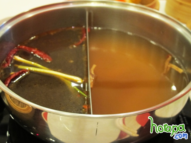 ในหนึ่งหม้อจะสามารถใส่น้ำซุปได้สองอย่าง ในภาพคือ ซุปเสฉวนและซุปยาจีนค่ะ