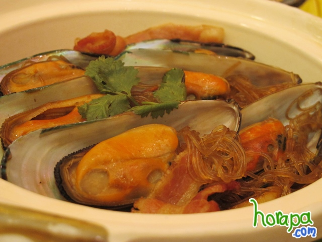 เมนู  A-la-carte ที่ทางร้านจัดมาให้มีสองอย่างด้วยกันค่ะ หอยแมลงภู่อบวุ้นเส้น เค้าจะมีเบคอนมาให้ด้วย วุ้นเส้นอร่อยมากๆเลยค่ะ ทานเพลินเลยจริงๆนะ