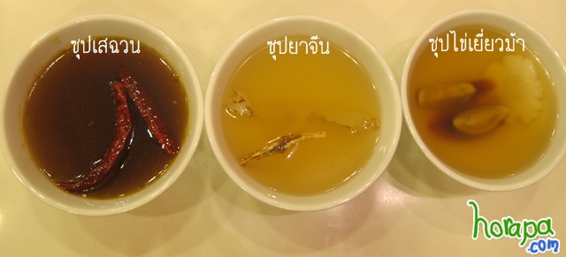 น้ำซุปแต่ละชนิดก็มีความแตกต่างกันไป นกทานน้ำซุปเสฉวนแล้วชอบ ติดใจมาก เพราะรสเผ็ดร้อน เมื่อเราลวกผักและเนื้อสัตว์ลงไป ไม่ต้องใช้น้ำจิ้มเพื่อเพิ่มรสชาติเลยค่ะ ส่วนซุปยาจีนก็จะกลมกล่อมไปอีกแบบ ซุปไข่เยี่ยวม้าก็ไว้ให้เด็กๆทานได้ค่ะ จะไม่มีรสเผ็ดร้อนค่ะ