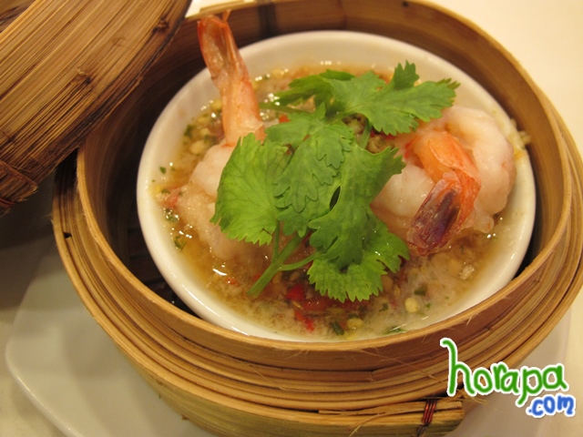 มาดูเมนูติ่มซำบ้างคะ นำเสนอมาหลายอย่างด้วยกัน อย่างแรก กุ้งนึ่งมะนาว กุ้งตัวโตมาก น้ำจิ้มก็อร่อยมาก แซ่บจริงๆ ไม่เผ็ดมากกำลังดีค่ะ