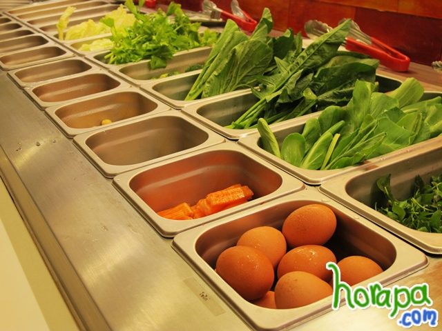 โซนผักต่างๆค่ะ ส่วนเนื้อสัตว์น่าจะต้องสั่งเอานะคะ แต่ก็รวมอยู่ใน บุฟเฟต์ All-you-can-eat ค่ะ