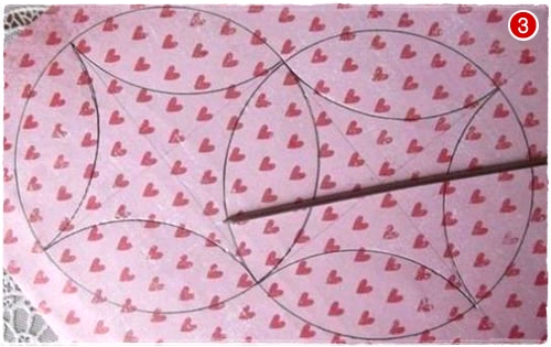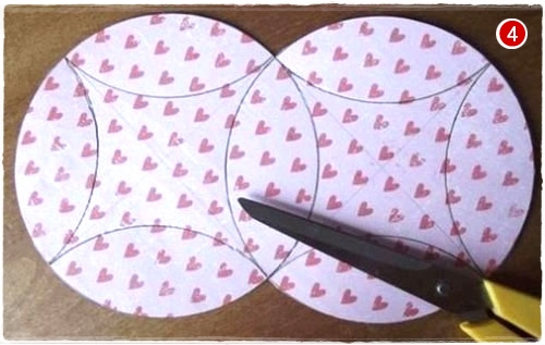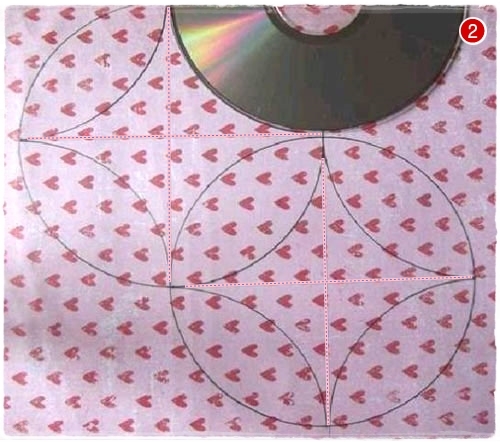 วาดเป็นวงกลมซ้อนกันให้ตรงกลางตัดกันอย่างในภาพค่ะ วาดขอบคล้ายๆ วงรีเหมือนกันทั้งสองวงโดยใช้ขอบของแผ่นซีดีทาบและวาดลงไปตามที่เราได้แบ่งเอาไว้วาดให้ครบ 4 ส่วนค่ะ