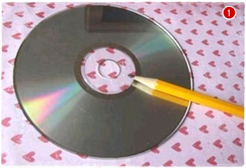 เริ่มจากให้นำแผ่นซีดีมาทาบลงบนกระดาษแข็งที่เราเตรียมไว้ จากนั้นให้ใช้ดินสอนั้นวาดตามรูปแผ่นซีดีค่ะและใช้ไม้บรรทัดวัดแบ่งพื้นที่ในวงกลมให้ได้สีส่วน