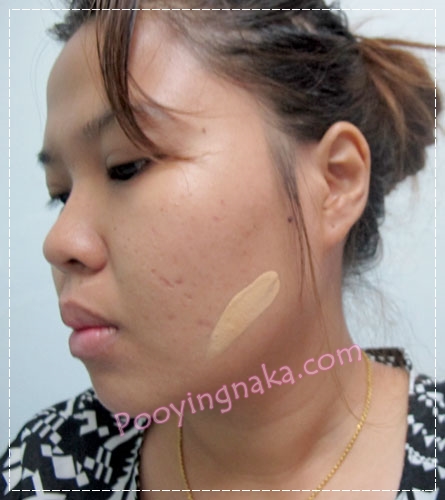 ลักษณะเนื้อรองพื้นบางเบา  ส่วนเรื่องของการปกปิดริ้วรอยต่างๆ สามารถปกปิดได้ปานกลางค่ะ ช่วยให้สีผิวหน้าดู Glow มากขึ้นค่ะ ของพลอยเป็น สี Natural 4 หรือธรรมชาติค่ะ ดูภาพก่อนทาและหลังทารองพื้นก็ไม่แตกต่างกันมากเท่าไหร่ค่ะ แต่ผิวดูเป็นธรรมชาติมากๆ (ซ้ายก่อนทารองพื้น-ขาวหลังทารองพื้น)