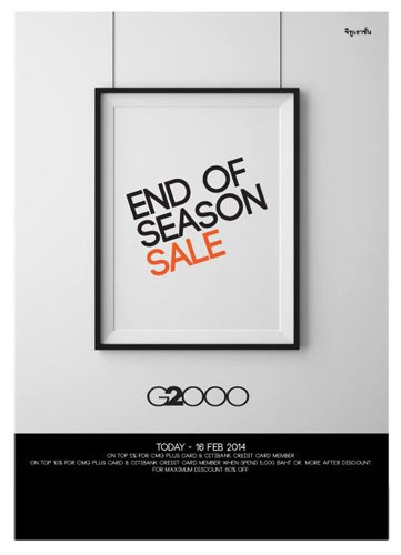 G2000 End of Season Sale ลดสูงสุด 50% ที่ Shop และ Counter G2000 ทุกสาขาทั่วประเทศ วันนี้ - 16 ก.พ. 57 นะคะ
