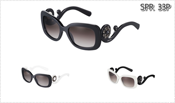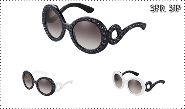 ความสวยงามของแว่นตาทรงกลมรุ่น Ornate ถูกถ่ายทอดออกมาจากการใช้คริสตัลสีอ่อนและ สีเข้มมาตกแต่งทีละชิ้นด้วยมือ บริเวณกรอบด้านหน้าที่มีความกว้างจึงทำให้แว่นตารุ่นนี้เน้น ความเป็นหญิงและดูอ่อนโยน รวมถึงการใช้คริสตัลครึ่งวงกลมประดับบนขาแว่นด้วย มีการใช้ ลูกเล่นด้วยสีต่างๆ รวมถึงการผสมผสานโทนขาวดำสุดคลาสสิกเข้าด้วยกัน มีโลโกตัวอักษรของ Prada