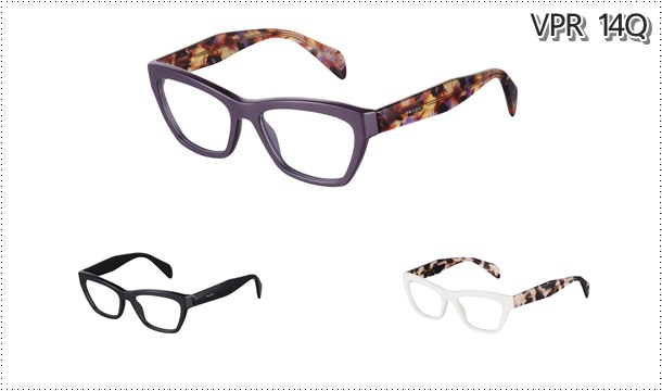 Prada นำเสนอแว่นตาสุดคลาสสิกที่ดูเรียบหรูชวนให้ย้อนกลับไปในช่วงทศวรรษที่ 50 ที่ไม่ล้า สมัย กรอบอะซิเตททรงสี่เหลี่ยมด้านหน้ามีรูปทรงตาแมวเล็กน้อย ในขณะที่ขาแว่นเคลือบเงา และมีความลาดเอียงใช้เทคนิคแบบสามมิติในสไตล์วินเทจ นอกเหนือจากสีดำ คลาสสิก และสี กระโทนกลาง มีการเล่นสีสันด้วยการผสานสีของกรอบด้านหน้าด้วยสีงาช้าง สีโกโก้ และสีม่วง ร่วมกับขาแว่นสีออร์คิด สีทราย และสีโกโก้-ม่วงลายกระ