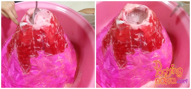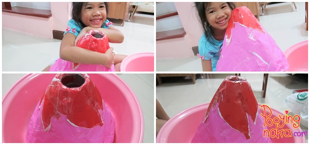 และนี่ก็คือภูเขาไฟของพวกเราค่ะ หลังจากเล่นเสร็จ เทน้ำด้านในออก อาจจะนำน้ำเปล่าล้างๆ แล้วเทน้ำทิ้ง จากนั้นเอาไปผึ่ง