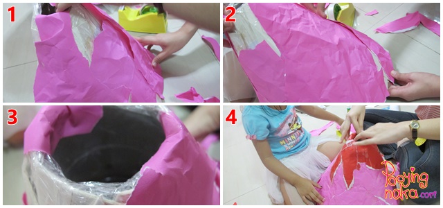 แล้วจัดการตัดกระดาษเพื่อนำมาทำเป็นฐานค่ะ แล้วเอาไปติดกับก้นกะละมัง