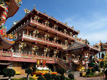 4. ศานเจ้าเล่งบ๊วยเอี๊ยะ เชื่อกันไหว้หากได้กราบไหว้และสักการะบูชาแล้วจะมีความมั่งคั่งทางการค้า ความก้าวหน้าในกิจการ สุขภาพแข็งแรง สถานที่ตั้ง: ถนนอิสรานุภาพ (ซอยเจริญกรุง 16)