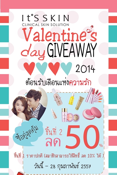 Its Skin เครื่องสำอางแบรนด์ดังจากประเทศเกาหลี แนะนำโปรโมชั่น ต้อนรับเดือนแห่งความรัก Valentines Day Give Away 2014 กับซื้อคู่สุดคุ้ม ชิ้นที่ 2 ลด 50%