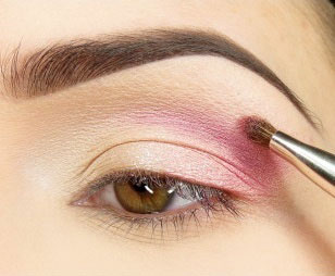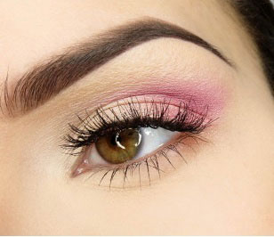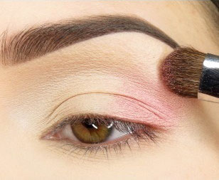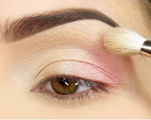 จากนั้นให้ใช้สีชมพูเกลี่ยไปบริเวณหางตาเข้าไปกึ่งกลางตาค่ะ