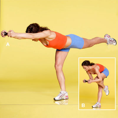 A. ยืนเท้าชิด ยกดัมเบล์ด้วยมือทั้งสองข้าง ค่อยๆเหยียดแขนไปด้านหน้าพร้อมค่อยๆก้มลงให้ได้ระดับเดียวกับเอวยก