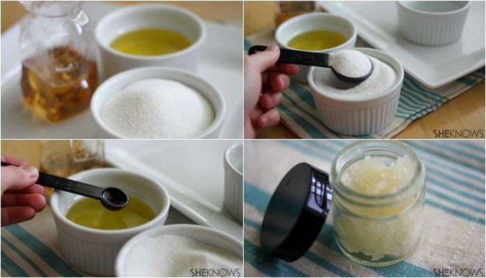 นำส่วนผสมทั้ง 3 มาผสมเข้าด้วยกัน และทาลงฝีปากจากนั้นเลือกใช้แปรงสีฟันนุ่มๆ ค่อยๆขัดวนๆ บริเวณริมฝีปากของเรา (ขัดเบาๆ นะคะ) หากไม่มีให้ใช้นิ้วมือเราแทนได้ค่ะ จากนั้นให้ล้างออกด้วยน้ำอุ่น และทาลิปมันตามทันที แค่นั้นริมฝีปากก็จะนุ่มขึ้นแล้วล่ะค่ะ