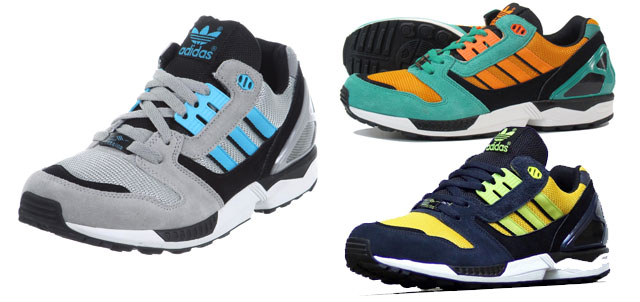 สุดท้ายกับที่สุดแห่งรองเท้าตระกูลนี้  ZX 8000 สุดยอดแห่งการผสมผสานระหว่างเทคโนโลยีเพื่อการวิ่ง และการดีไซน์ที่สวยงาม มาพร้อมเทคโนโลยี Torsion ที่ช่วยซัพพอร์ตบริเวณอุ้งเท้า ทำให้เท้าสามารถปรับสภาพได้ดีตามสภาพพื้นผิว โดยในซีซั่นนี้มาพร้อมกับสีสันที่แปลกตาอย่างโทนสีเหลือง-เขียว สีน้ำเงิน-เหลือง และสีเทา-ฟ้า อีกทั้งการนำเอาวัสดุหนังกลับ ผสมผสานกับการใช้พลาสติก และผ้าตาข่ายมาออกแบบใหม่ได้อย่างลงตัว ทำให้รองเท้าคู่นี้ดูทันสมัยขึ้นอย่างเห็นได้ชัด ราคา 4,090 บาท ถึงราคาจะดูสูงกว่ารุ่นอื่นๆ แต่รับรองว่าหนุ่มคนไหนได้ไปครอบครองล่ะก็ไม่ผิดหวังอย่างแน่นอน