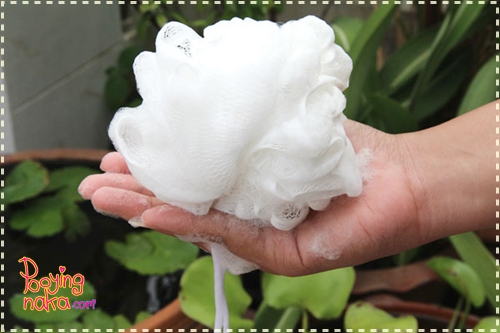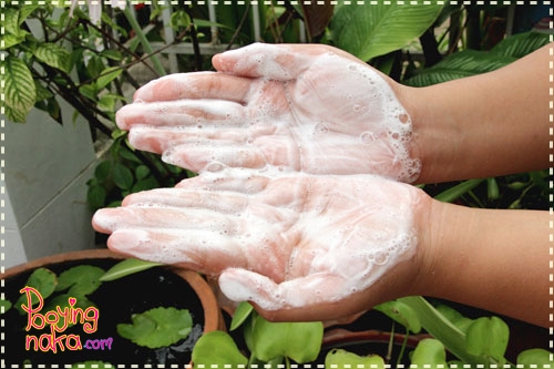 คราวนี้ทดลองบีบและขยี้กับที่ใยขัดตัวบ้างดีกว่าค่ะ บีบแค่นิดเดียวเอง ฟองเยอะเหมือนกันน่ะ