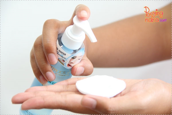 ทำเหมือนเดิมค่ะ กด Moisture Care Cleansing Water ประมาณ 1-2 ปั้มให้ชุ่มทั่วทั้งสำลี