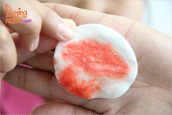 สีสดมากๆ เลยค่ะ เรามาทดลองเช็ดออกกันเลยดีกว่าค่ะ