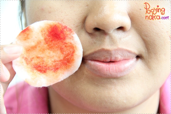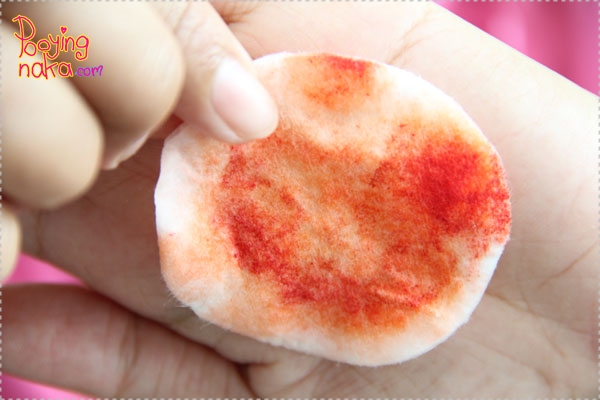 เช็ดออกแล้วก็จะเป็นอย่างในรูปเลยค่ะ สำหรับสูตร Brighten up Cleanising Water  ช่วยให้ผิวเรากระจ่างใสขึ้น