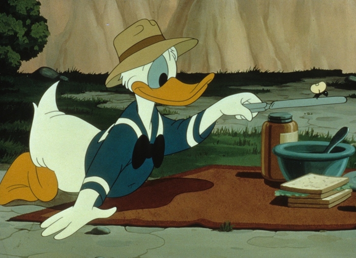 2. โดนัลด์ปรากฏตัวครั้งแรกบนจอเงินเมื่อปีพ.ศ. 2477 ในภาพยนตร์แอนิเมชั่นของดิสนีย์เรื่อง "The Wise Little Hen