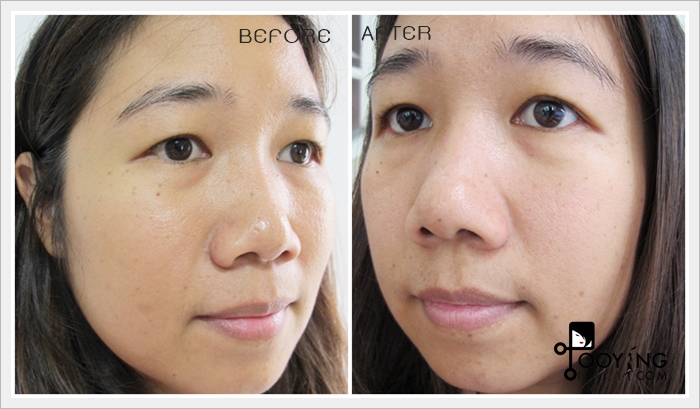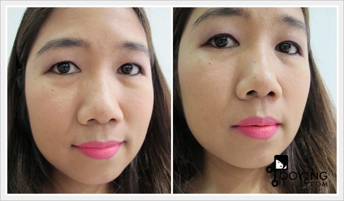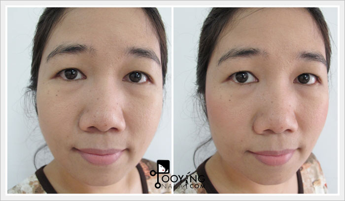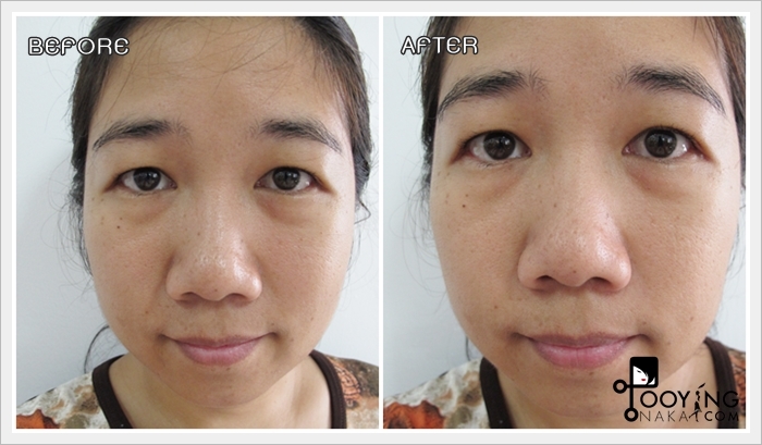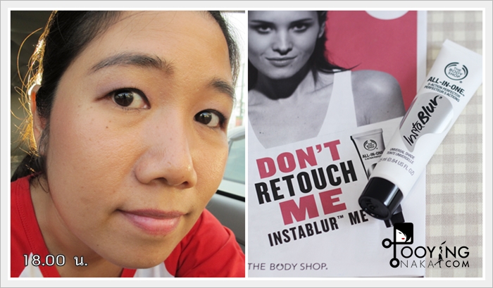 ลองแบบที่ 1 ก่อนค่ะ เพราะว่าปกติแล้วถ้าไม่ได้ไปงานนกจะไม่แต่งหน้า (ไม่แต่งเลยจริงๆ) ปกติตอนเช้าหลังลงครีมบำรุงก็จะลงกันแดด ก็เสร็จ หรืออย่างมากก็ทาแป้งลดความมันจากการลงกันแดดสักหน่อยค่ะ เค้าว่าใช้เดี่ยวๆให้หน้าดูเป็นธรรมชาติได้ ทาให้ทั่วเน้นจมูก แก้มและหน้าผากค่ะ ถ้าดูภาพ Before จะเห็นว่าหน้าจะเงาเพราะครีมบำรุงค่ะ (วันนี้ไม่ได้ลงกันแดดเพราะกันแดดของนกมีสี) แค่ครีมบำรุงหน้าก็เงาๆมันๆนิดๆแล้ว หลังจากใช้ All-In-One Instablur จะเห็นได้เลยว่า ผิวที่ดูเงา ดูมัน จะเกือบแมตต์เลยค่ะ คือดีมากค่ะจุดนี้ เรื่องควบคุมความมันชนะเริศเลย